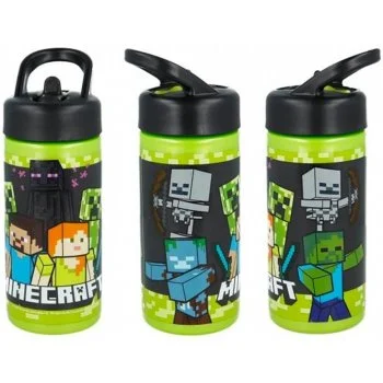 Plastová športová fľaša na pitie Minecraft so slamkou. Má praktické uško na nosenie, alebo ...