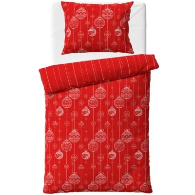 Vianočné posteľné obliečky s motívom bielych baniek na perličkovej retiazke s červeným podkladom ...