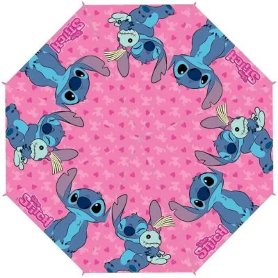 Detský ružový skladací dáždnik s motívom Lilo & Stitch. Priemer roztiahnutého dáždnika je ...
