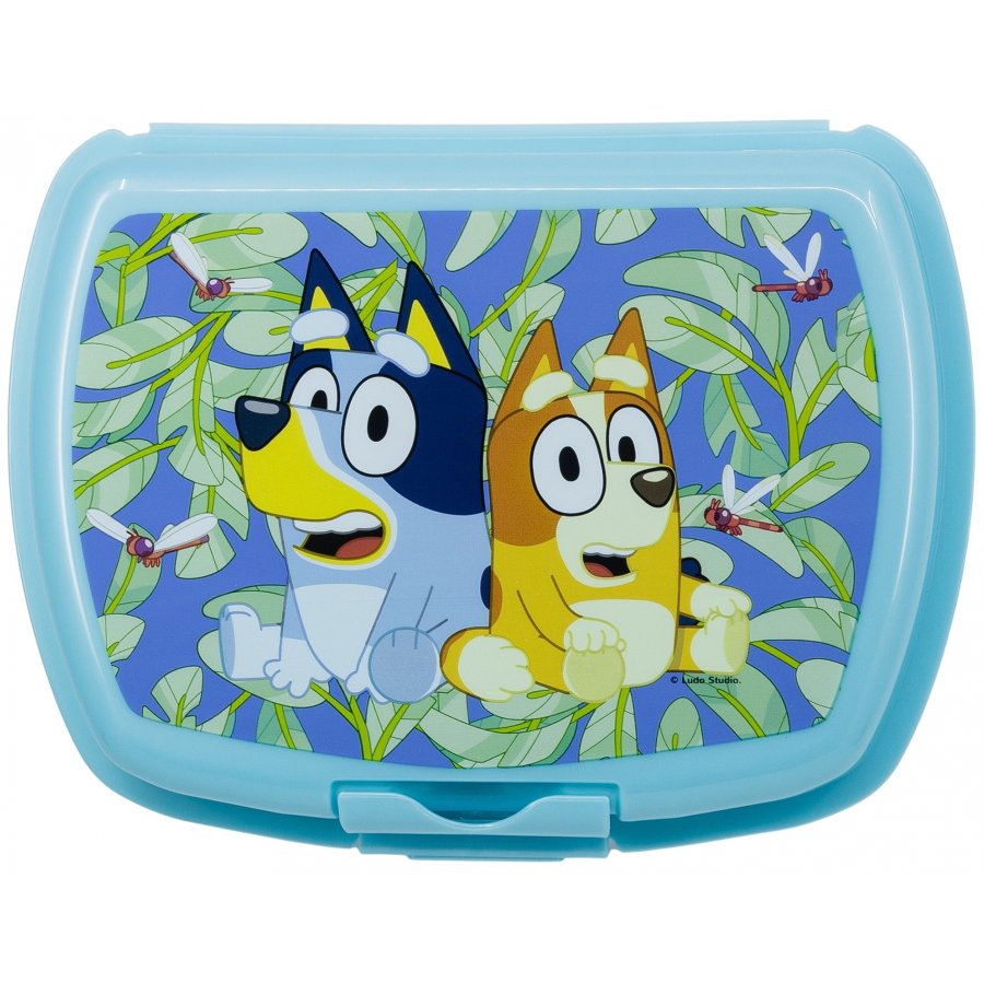 Olovrantový box Bluey s klipsňou. Praktická krabička na desiatu ideálna do školy, na cesty aj výlety. Veko je zdobené obrázkom Bluey a jej mladšie sestry Bingo. Tento desiatový box je vhodný pre deti od 3 rokov a nie je určený do umývačky riadu ani mikrovlnnej rúry. Na čistenie sa neodporúča používať abrazívne čistiace prostriedky ani detergenty. Rozmery boxu sú približne 17 x 12,5 x 7 cm.
