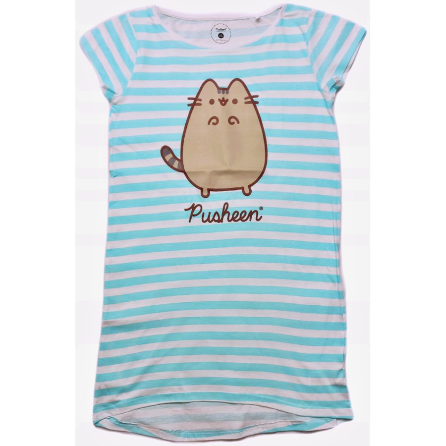 Dámske spacie tričko / nočná košeľa mačička Pusheen. Je vyrobené zo 100% bavlny a z prednej strany ho zdobí obrázok mačičky Pusheen. Ponúkame ho vo variante s tyrkysovými a bielymi prúžkami, alebo s bielymi bodkami na staroružovom podklade - viď. výber veľkosti a farby.