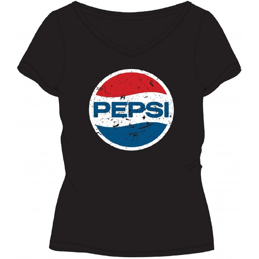 Dámske tričko s výstrihom do "véčka" a krátkym rukávom PEPSI. Toto tričko ponúkame v bielom, alebo čiernom prevedení s rôznym typom loga PEPSI - viď obrázky produktu a výber veľkosti a farby nižšie.