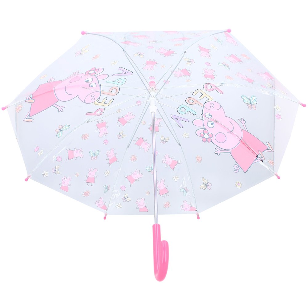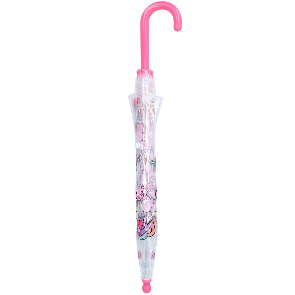 Tento dievčenský dáždnik zaujme každú malú fanynku seriálu Prasiatko Peppa o veselom prasiatku a jeho rodine. Poťah dáždnika je vyrobený z odolného materiálu, ktorý zaistí dlhú životnosť, a vďaka transparentnému prevedeniu sa s ním bude každá malá slečna ľahko orientovať v priestore. Plastová rukoväť s hladkým povrchom poskytne pohodlný úchop pre drobné detské ruky. S priemerom 68 cm, dĺžkou zatvoreného dáždnika 60 cm a nízkou hmotnosťou je ideálny pre malé slečny. Vďaka tomuto dáždniku bude každá fanynka Prasiatka Peppy nielen v suchu, ale aj štýlová počas každého daždivého dňa.