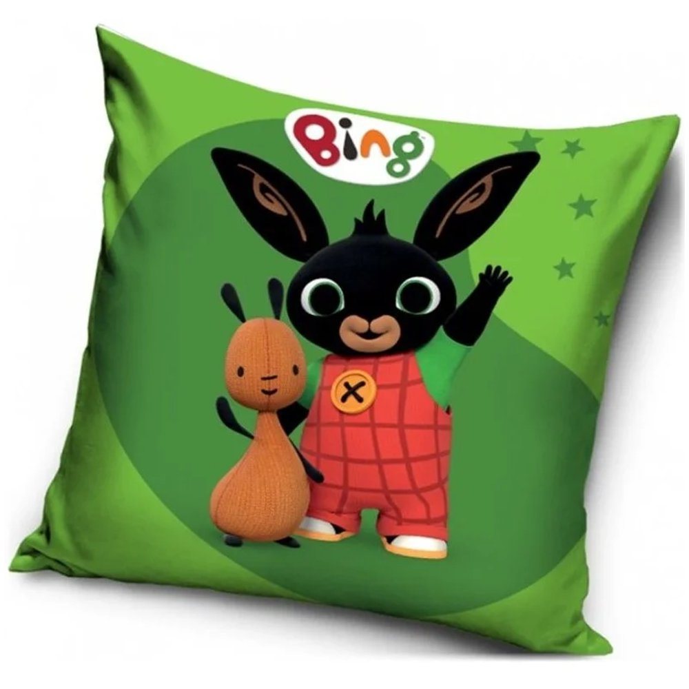 Detský vankúšik s motívom Zajka Binga a Flopa. Obliečka je vyrobená z hebkého velúru s gramážou 190 g/m², veľmi príjemného na dotyk, ktorý si uchováva sýte farby aj po mnohých praniach, so zapínaním na zips. Vo vnútri je výplň zašitá vo vlastnom obale, a je teda vyberateľná. Rozmer vankúša je 40 x 40 cm.