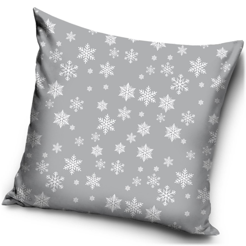 Svetlosivá obliečka na vankúšik s bielymi snehovými vločkami z jemného, príjemného a nekrčivého ...