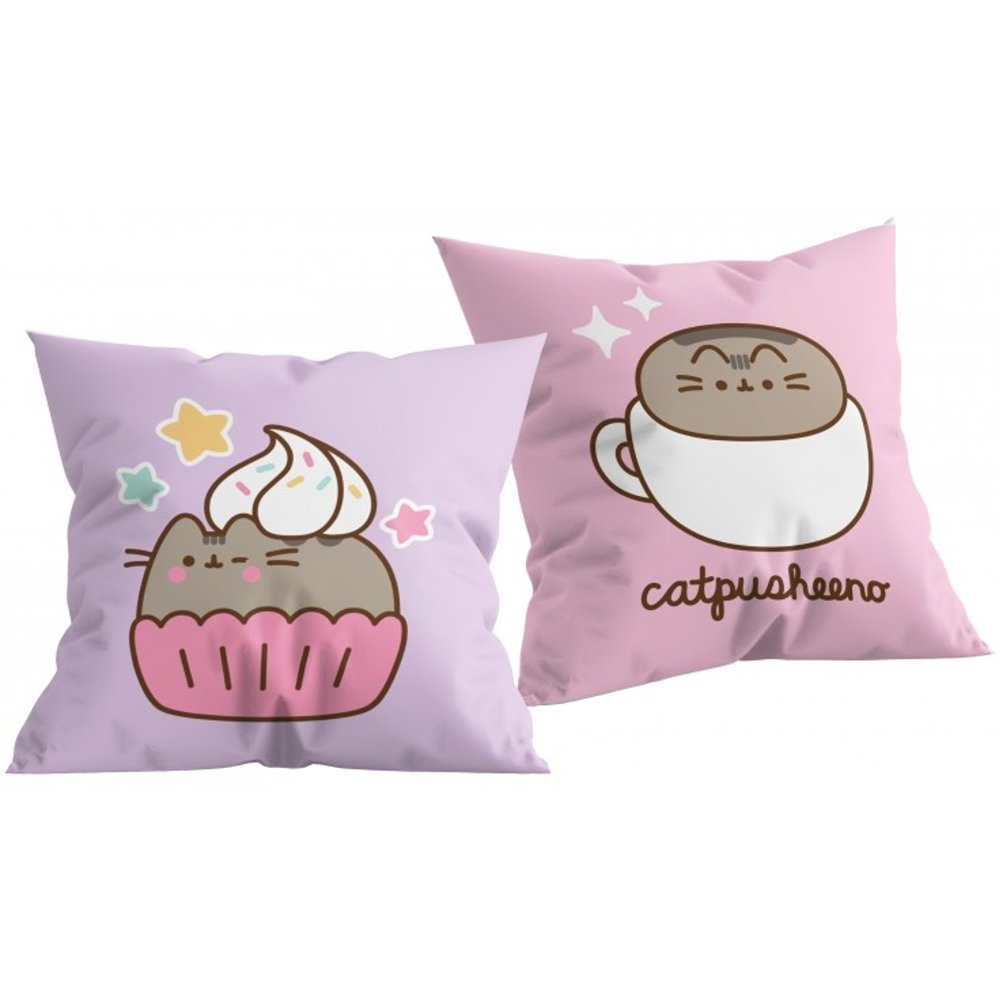 Dekoračný vankúš Pusheen so „sladkým“ motívom Catpusheeno & Cupcake. Každú stranu vankúša zdobí iný motív – viď obrázok produktu. Jemný nekrčivý povlak s príjemne mäkkou výplňou. Balenie obsahuje 1× vankúš o rozmere 40x40 cm.