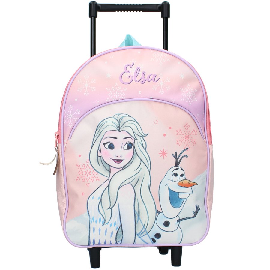 Dievčenský cestovný kufrík na kolieskach s motívom Ľadové kráľovstvo - Frozen. Je ideálnym spoločníkom pre malé cestovateľky. Kufor má jednu hlavnú komoru s rozmermi cca 33 x 25 x 11 cm so zapínaním na zips. Zdobí ho krásny obrázok princeznej Elsy a jej kamaráta snehuliaka Olafa. Výsuvné držadlo s plastovým madlom, textilné ucho na zavesenie, kolieska a predné nôžky zaisťujú pohodlnú manipuláciu. Navyše, vďaka nastaviteľným polstrovaným popruhom na zadnej strane, môže byť kufrík ľahko premenený na batoh. Perfektná kombinácia funkčnosti a obľúbeného dizajnu zaručuje, že vaše dievčatko bude cestovať štýlovo a pohodlne.