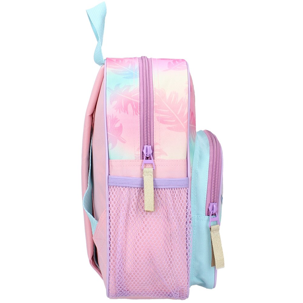 Dievčenský batôžtek Lilo & Stitch z kolekcie "Wild Energy" s hravou ružovou galaxy farbou a obrázkom Stitcha. Má jeden hlavný oddiel, menšie vrecko na zips, nastaviteľné popruhy a bočné vrecká na drobnosti. Rozmery cca 29 x 23 x 10 cm.