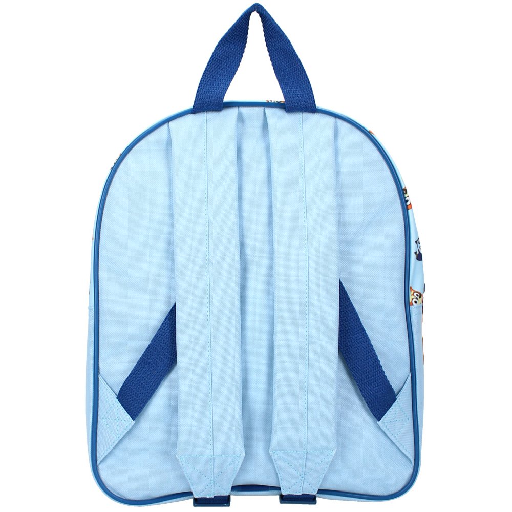 Viac o produkteTento detský batoh z kolekcie „Jump Into Fun“ je skvelý pre všetkých malých fanúšikov Bluey a jej dobrodružstiev! Hlavná priehradka ponúka dostatok priestoru na drobnosti na každý deň. Predné vrecko so zapínaním na zips a pruhovaným vzorom s obrázkom Bluey a jej sestry Bingo dodáva batohu hravý vzhľad. Batoh je svetlomodrý s tmavomodrými detailmi, nastaviteľné popruhy s mäkkou výstelkou zaisťujú pohodlie a praktické uško umožňuje nosenie v ruke či zavesenie.