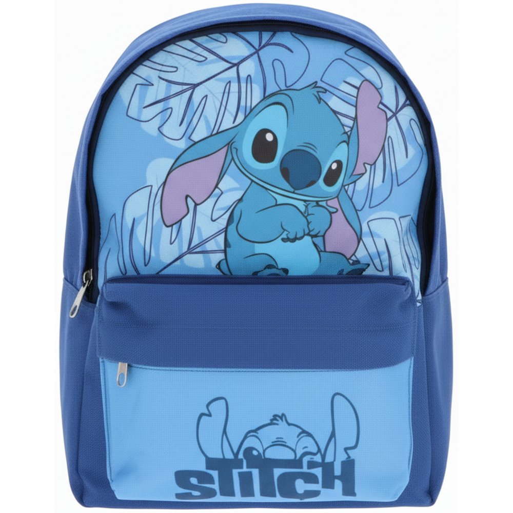 Detský batoh pre chlapcov Stitch s jedným hlavným priestorom a predným vreckom na zips. Má nastaviteľné a polstrované popruhy na pohodlné nosenie a uško na zavesenie či prenášanie v ruke. Veľkosť cca 30 × 24 × 12 cm je ideálna do škôlky, na ihrisko aj na menší výlet.