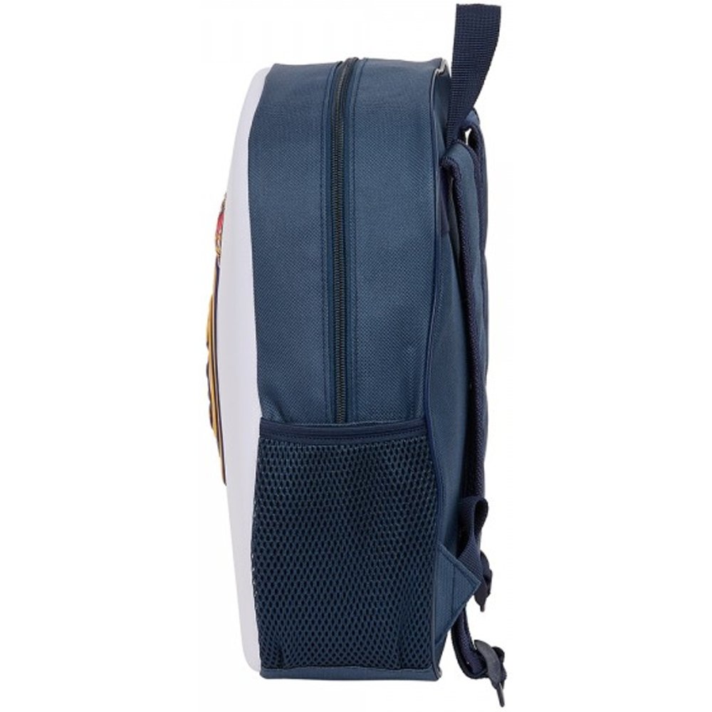 Detský batôžtek Real Madrid FC s plastickým 3D logom tohto slávneho španielskeho klubu. Má priestranné hlavné vrecko na zips, nastaviteľné polstrované popruhy a pútko na nosenie v ruke alebo zavesenie. Nechýba ani bočné sieťované vrecko na fľašu či drobnosti. Rozmery cca 33 × 27 × 10 cm.