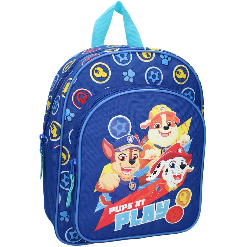 Chlapčenský batoh Labková patrola s motívom Pups at Play. Má jednu hlavnú priehradku a predné vrecko na zips. Samozrejmosťou sú nastaviteľné polstrované popruhy a pútko na zavesenie alebo nosenie v ruke. Rozmery cca 30 x 25 x 11 cm.