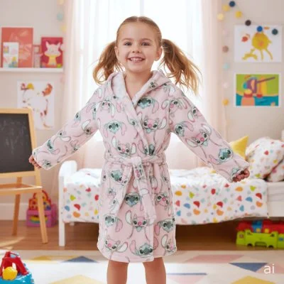 Detský župan s portrétmi obľúbených mimozemšťanov Stitcha a Angel z populárnej animovanej ...