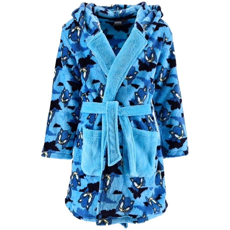 Detský župan Ježek Sonic. Tento chlapčenský župan je vyrobený z príjemne jemného a hrejivého zamatového coral fleece WellSoft 190 g/m² s obrázkami kultového komiksového, herného a teraz už aj filmového ježka Soníka. Župan má kapucňu, dve vrecká a samozrejme opasok v páse.