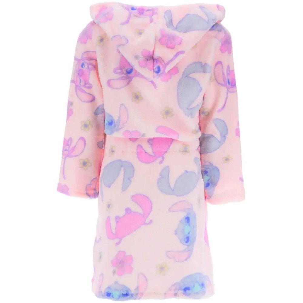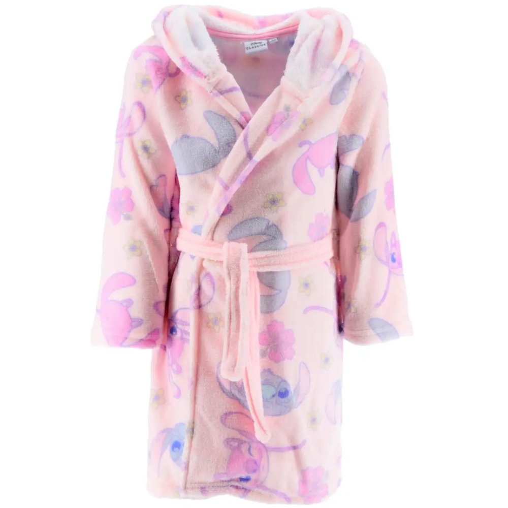 Detský župan s kapucňou Lilo a Stitch v jemnej ružovej alebo fialkovej farbe. Vyrobený z hebkého flísu 190 g/m² s portrétmi Stitcha a Angel. Dostupný vo veľkostiach 3A až 8A (EU 98–128).