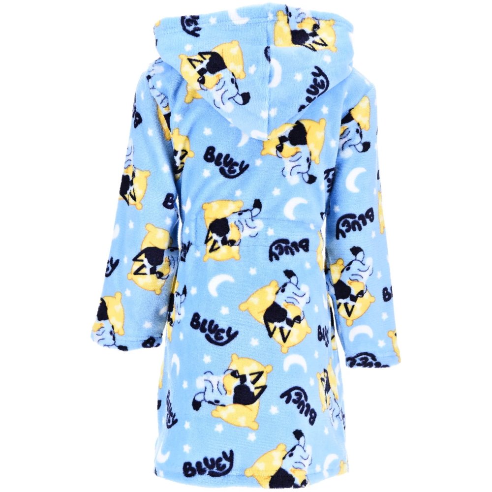 Detský župan Bluey s motívom veselé sučky Bluey z rovnomenného animovaného seriálu. Má kapucňu, dve vrecká a opasok v páse. Vyrobený z mimoriadne hebkého materiálu WellSoft. Dostupný vo veľkostiach 98, 104, 110 a 116.