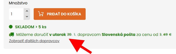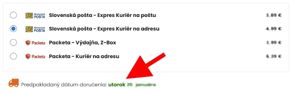 Na stránke objednávky sa po výbere dopravcu zobrazí presnejší termín dodania podľa vybraného dopravcu.