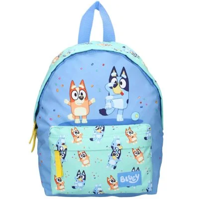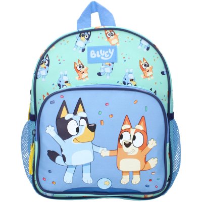 Malý detský batoh Bluey s obrázkom sučky Bluey a jej sestričky Bingo. Hlavný priestor má ...