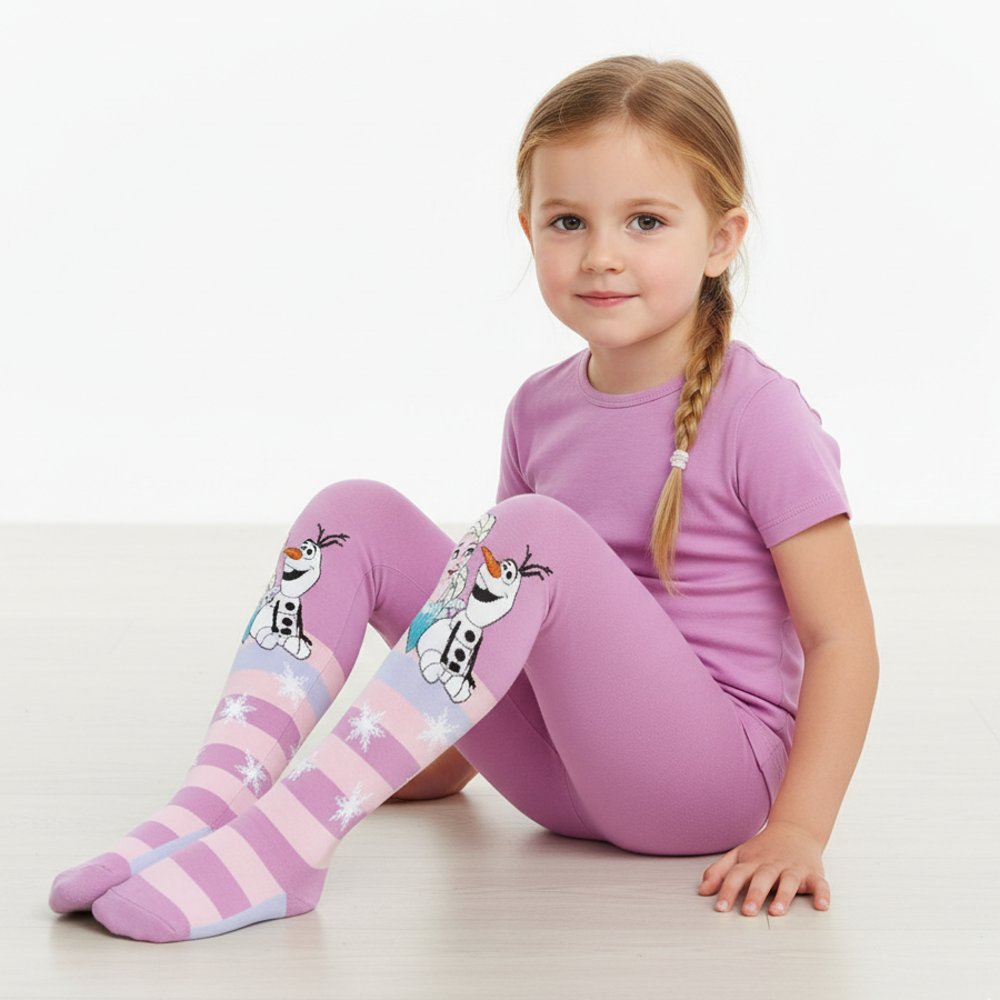 Dievčenské pančucháče s motívom Frozen potešia všetky malé fanúšičky Ľadového kráľovstva. Veselý dizajn s princeznami Elsou, Annou a ich kamarátom snehuliakom Olafom dodá outfitu hravý štýl. Pohodlný materiál zaistí príjemné nosenie doma, v škôlke aj vonku. Dostupné vo veľkostiach 92–134.