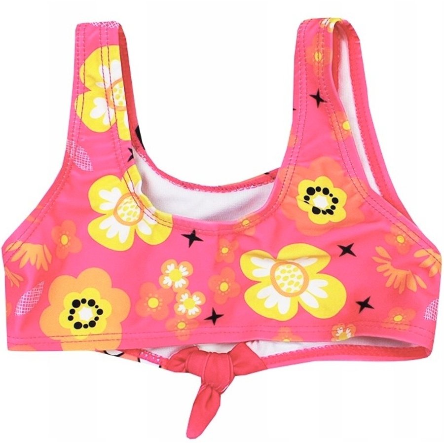 Dievčenské dvojdielne kvetinové plavky Minnie Mouse - Disney. Horný diel plaviek zdobí obrázok legendárnej myšky Minnie a nápis s jej menom na ružovom, alebo tyrkysovom podklade s množstvom kvetov - viď výber farby a veľkosti. Spodný diel je vysoko vykrojený a na bokoch spojený uzlíkami. Aj horný diel je na hrudi ozdobený ležérnym uzlíkom. Z vnútornej strany spodnej časti nohavičiek je jemná biela podšívka. Materiál plaviek je pomerne elastický, takže sa dobre prispôsobí telu a pohodlne sa nosia.