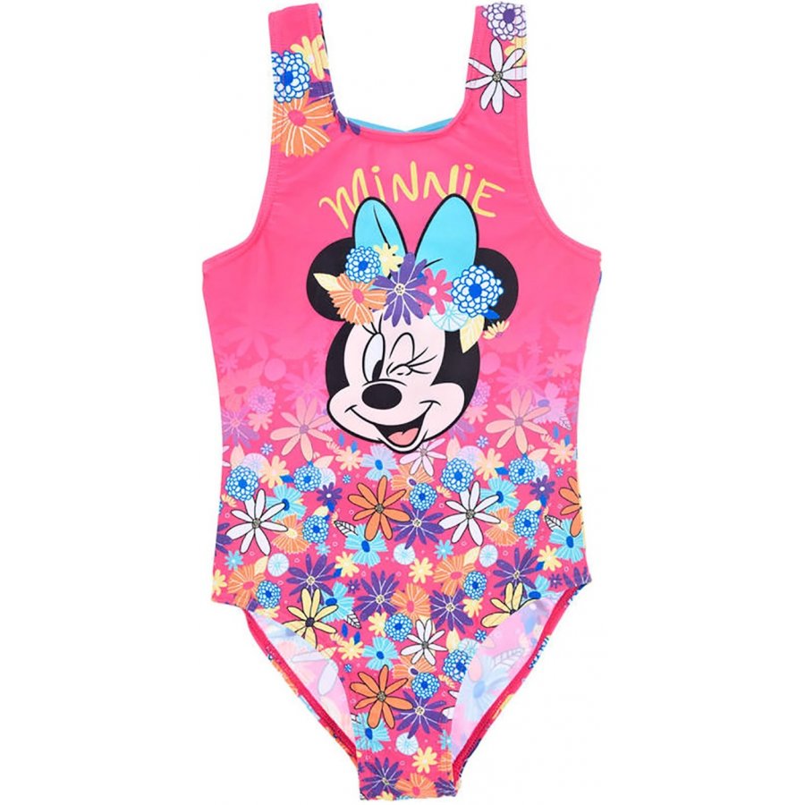 Jednodielne plavky pre dievčatá Minnie Mouse - Disney - s kvetinami. Prednú časť plaviek zdobí obrázok legendárnej myšky Minnie a nápis s jej menom na ružovom, alebo tyrkysovom podklade s množstvom kvetov - viď výber farby a veľkosti. Na zadnej časti je výstrih s farebnými pásikmi. Z vnútornej strany spodnej časti plaviek je jemná biela podšívka. Materiál plaviek je pomerne elastický, takže sa dobre prispôsobí telu a pohodlne sa nosia.