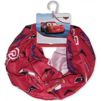 Detská multifunkčná šatka Auta - Cars. Zdobí ju obrázky pretekára Bleska McQueena, víťazné ...