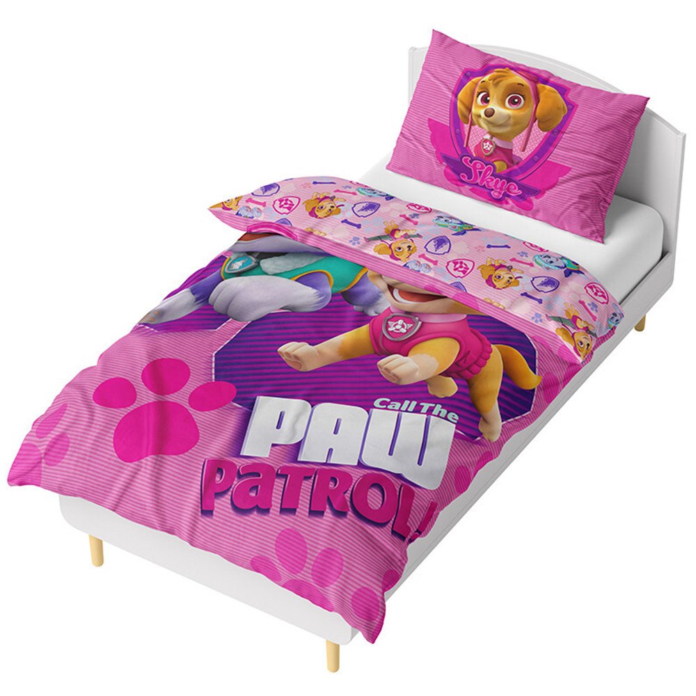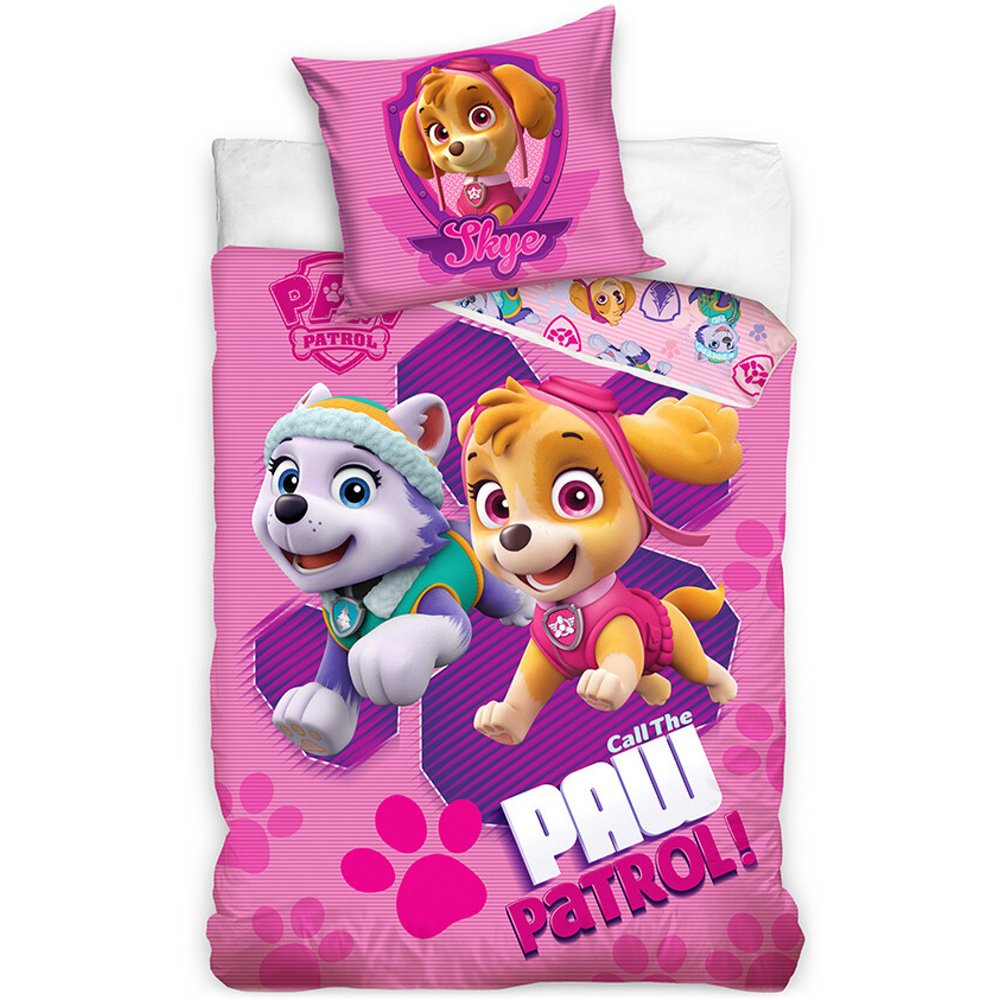 Hrejivé mikroplyšové obliečky Paw Patrol s motívom Odvážne záchranárky potešia všetky malé fanúšičky tohto animovaného seriálu. Na lícnej strane sú obľúbené hrdinky Everest a Skye, na rube sú tiež ich malé obrázky, psie známky a symboly pamlskov. Jemný huňatý materiál je priedušný, udržuje teplo a zabezpečí deťom pohodlný spánok. Rozmery 140 x 200 cm + 70 x 90 cm.
