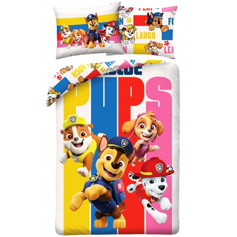 Obojstranné bavlnené posteľné obliečky Tlapková patrola - Paw Patrol - motív Rescue Pups s obľúbenými hrdinami Chase, Marshall, Skye a Rubble. Sú vyrobené zo 100% bavlny so zapínaním na zips. Súprava na prikrývku 140x200 a vankúš 70x90 cm.