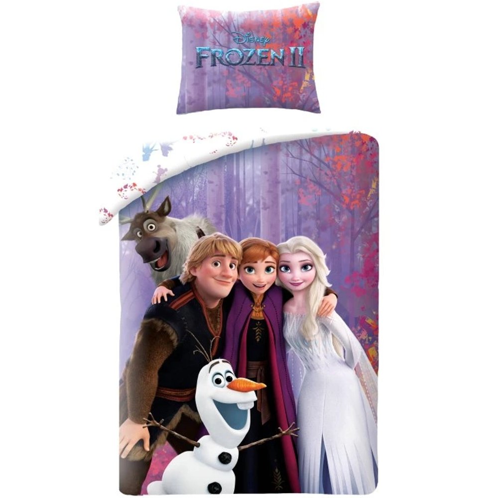 Dievčenské posteľné obliečky Frozen II s motívom priateľov z Ľadového kráľovstva v magickom lese. Obliečky zo 100% bavlny so zapínaním na zips. Súprava obsahuje obliečku na prikrývku 140 x 200 cm a obliečku na vankúš 70 x 90 cm.