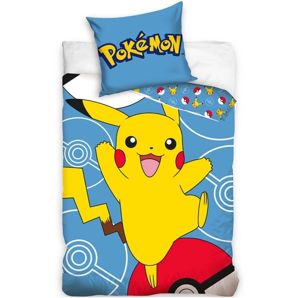 Detské posteľné obliečky Pokémon Pikachu a Pokéball s veselým obrázkom asi najslávnejšieho Pokémona Pikachu. Obliečky sú vyrobené zo 100% hladkej bavlny Renforcé, príjemné na dotyk a dobre priedušné. Rozmer 140 x 200 cm + 70 x 90 cm, zapínanie na zips.