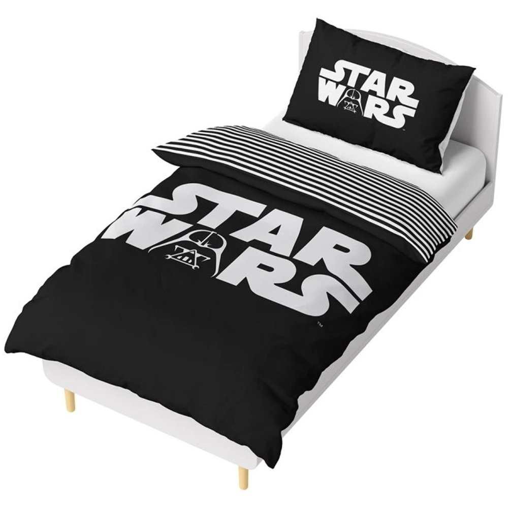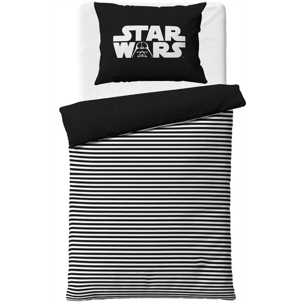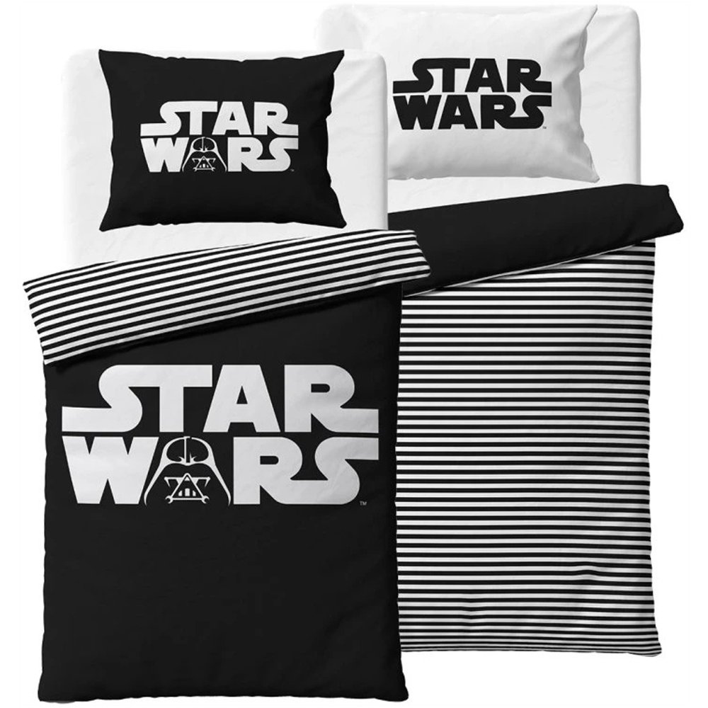 Viac o produktePonorte sa do sveta Jediov, Sithov a epických vesmírnych bitiek s týmito štýlovými obliečkami Star Wars. Na čiernej lícnej strane prikrývky dominuje ikonické logo STAR WARS s maskou Darth Vadera, zatiaľ čo druhá strana je ladená do čiernobielych pruhov. Obojstranný vankúš s výrazným nápisom v čiernej aj bielej variante dotvára minimalistický, napriek tomu silný dizajn. Obliečky z kvalitnej hladkej bavlny Renforcé sú príjemné na dotyk, priedušné a ľahko sa udržujú.