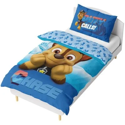 Súprava posteľných obliečok Paw Patrol s obrázkom obľúbeného policajta Chase. Je vyrobená zo ...