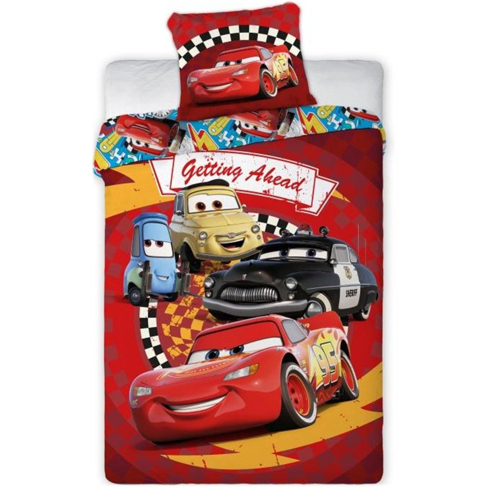 Súprava posteľných obliečok Cars - motív Getting Ahead. Je vyrobená zo 100% bavlny a má praktické zapínanie na zips. Obsahuje 1× obliečku na prikrývku 140x200 cm a 1× obliečku na vankúš 70x90 cm, takže je určená na štandardnú veľkú posteľ.