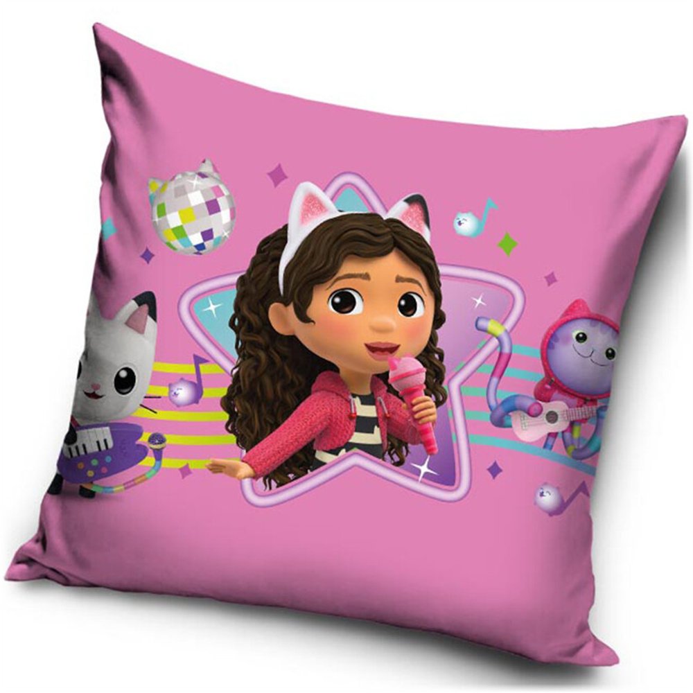Obliečka na vankúšik Gabby's Dollhouse s motívom Speváčka Gábi. Je vyrobená z príjemne jemného a nekrčivého velúrového materiálu so zapínaním na zips. Rozmery 40 × 40 cm.