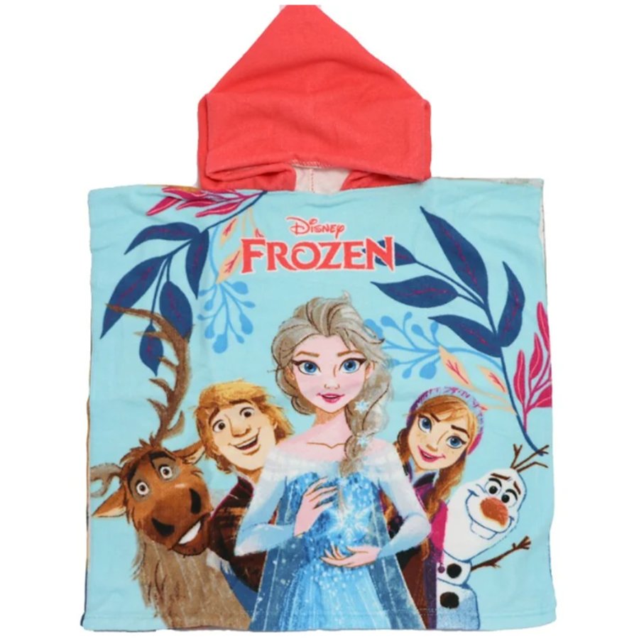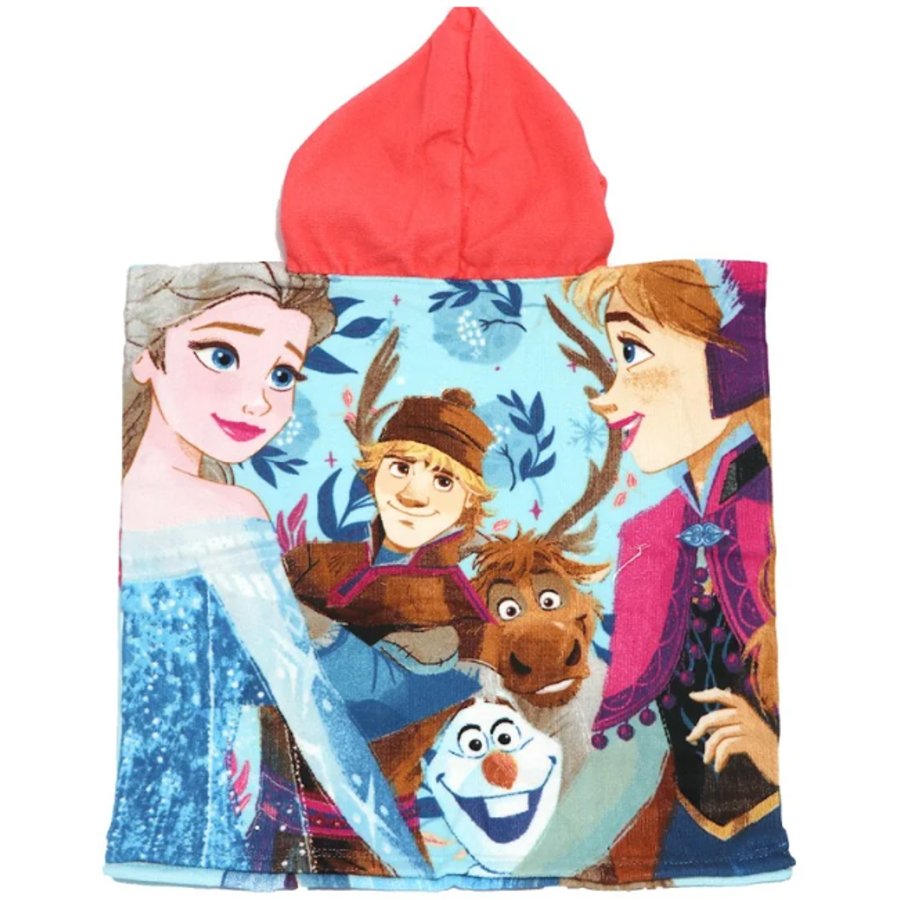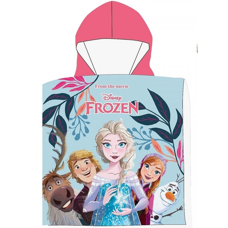 Dievčenská osuška s kapucňou / detské pončo s motívom Ľadového kráľovstva - Frozen. Toto pončo je vyrobené z príjemne jemného mikrovlákna s vynikajúcou savosťou. S rozmermi 50 x 100 cm je ideálne pre menšie deti. Hodí sa po kúpeli doma, alebo aj na pláž.