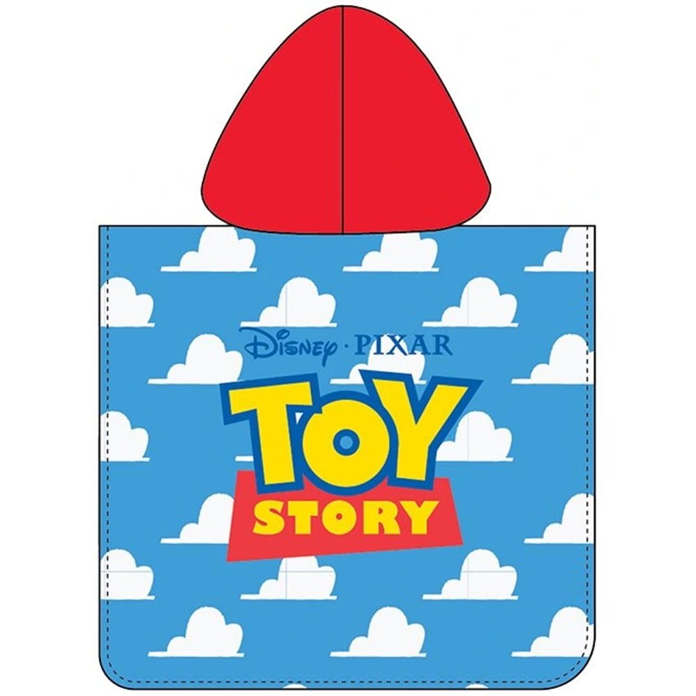 Viac o produkteFroté pončo pre deti v licencii Disney / Príbeh hračiek s motívom Woody a Priatelia nadchne všetkých malých fanúšikov legendárnej rozprávky Toy Story. Na prednej strane ponča je obrázok štyroch známych postáv – kovboj Woody, Buzz Rakeťák, dinosaurus Rex a malý zelený mimozemšťan Jimbo, akoby boli nakreslení pastelkami. Zadná strana ponča je potlačená ikonickým vzorom obláčikov z izbičky Andyho a doplnená veľkým nápisom „Toy Story“.