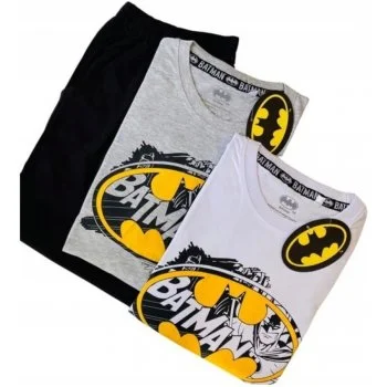 Licenčné pánske pyžamo DC Comics - Batman - s krátkym rukávom a krátkymi nohavicami. Toto pyžamo ponúkame s horným dielom bielej alebo sivo melírovanej farby. Biela varianta je vyrobená zo 100% bavlny, šedá varianta je s 5% prímesou viskózy kvôli melírovaniu. Kraťasy sú vyrobené zo 100% bavlny a sú čierne.