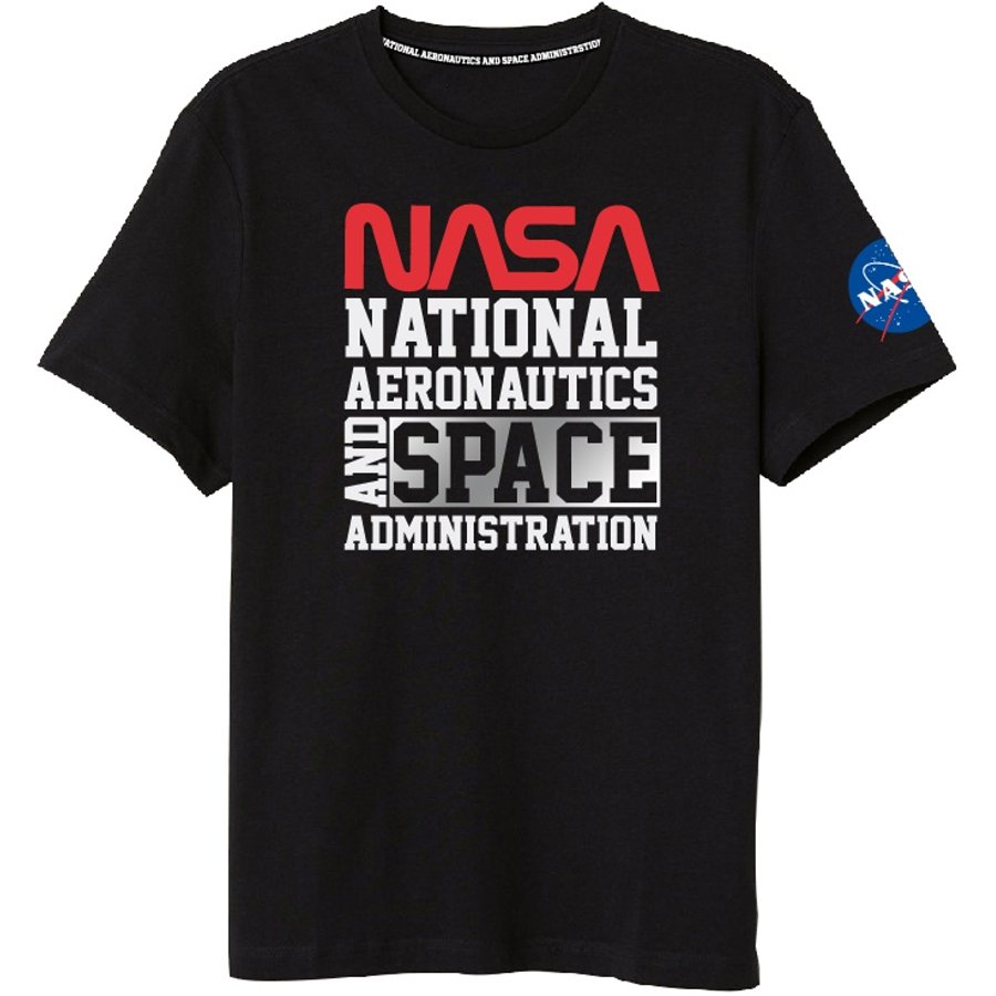Pánske tričko s okrúhlym výstrihom NASA. Je vyrobené zo 100% bavlny 160 GSM. Zdobí ho nápis NASA - National Aeronautics and Space Administration, pričom slovo "SPACE" je striebristé. Logo NASA je aj na rukáve. Toto tričko ponúkame s rovnakou potlačou v bielom, alebo čiernom prevedení - viď výber veľkosti a farby.