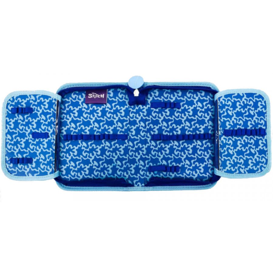 Puzdro na školské potreby Lilo & Stitch - štýlový a praktický školský peračník pre malých fanúšikov obľúbenej animovanej dvojice Lilo a Stitcha a ich kamarátov. Tento školský peračník je navrhnutý s ohľadom na maximálnu funkčnosť a pohodlie. Je vybavený klasickými gumovými úchytmi, ktoré bezpečne držia ceruzky, pastelky a fixky, a širšími úchytmi na pravítko, gumu alebo strúhadlo (vybavenie nie je súčasťou). Okrem toho obsahuje dve klopne s priehľadnou fóliou, ktoré sú ideálne na uloženie rozvrhu hodín, poznámok alebo iných dôležitých papierikov, takže vaše dieťa bude mať všetky dôležité informácie vždy na dosah. Peračník sa ľahko otvára a zatvára pomocou zipsu, čo zaisťuje rýchly prístup k písacím potrebám a ich bezpečné uloženie. S rozmermi prispôsobenými na školské použitie a originálnym dizajnom Lilo & Stitch je tento peračník nielen praktický, ale aj štýlový doplnok, ktorý poteší každého malého školáka.
