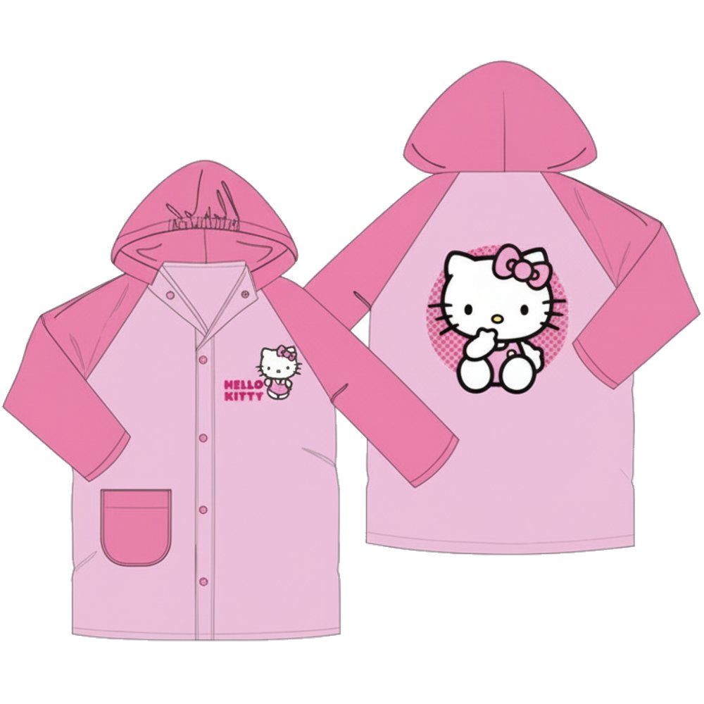 Detský pršiplášť Hello Kitty pre dievčatá s kapucňou, zapínaním na cvoky a jedným vreckom. Ponúkame ho vo veľkostiach 98, 104, 116, alebo 128, teda pre deti približne od 3 do 8 rokov. Ideálny do škôlky, na ihrisko aj na cesty v daždivom počasí.