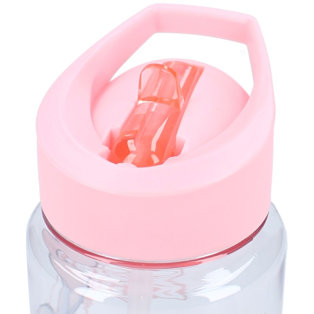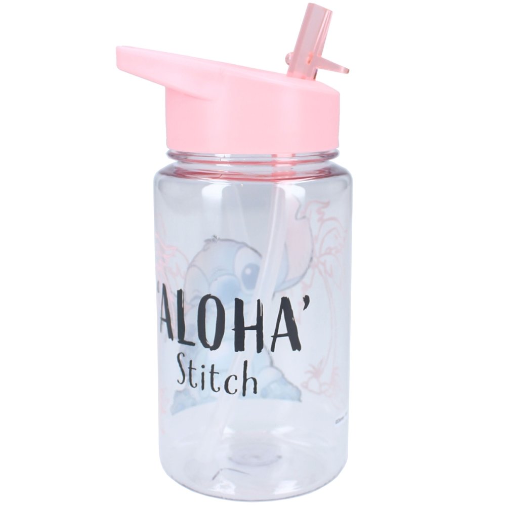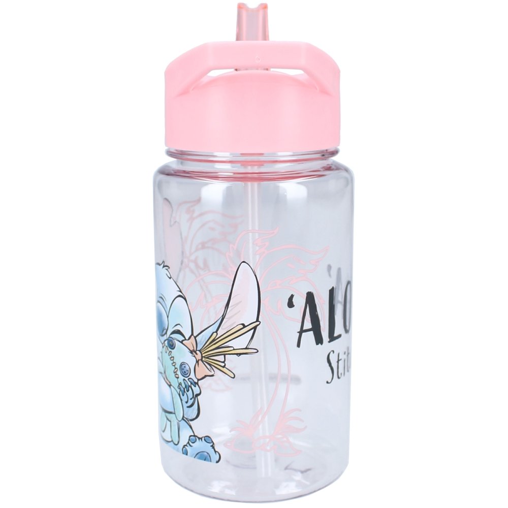 Detská fľaša na pitie Lilo & Stitch s integrovanou slamkou a ružovým viečkom s uškom pre ľahké prenášanie. Má objem 450 ml a je vyrobená z odolného plastu bez obsahu BPA. Vhodná pre deti od 3 rokov.