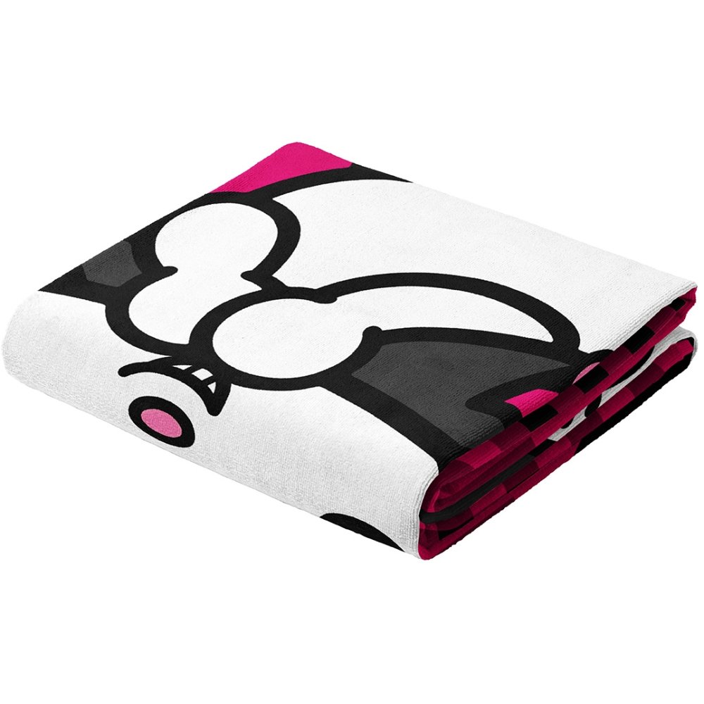 Dievčenská osuška s motívom malého diablika Kuromi – odvážnej a hravej postavičky zo sveta Sanrio, na výraznom ružovo-čiernom pozadí s károvaným vzorom. Vyrobená zo 100% bavlny s gramážou 320 gr./m², rozmer 70 × 140 cm. Ideálna k vode aj do kúpeľne.