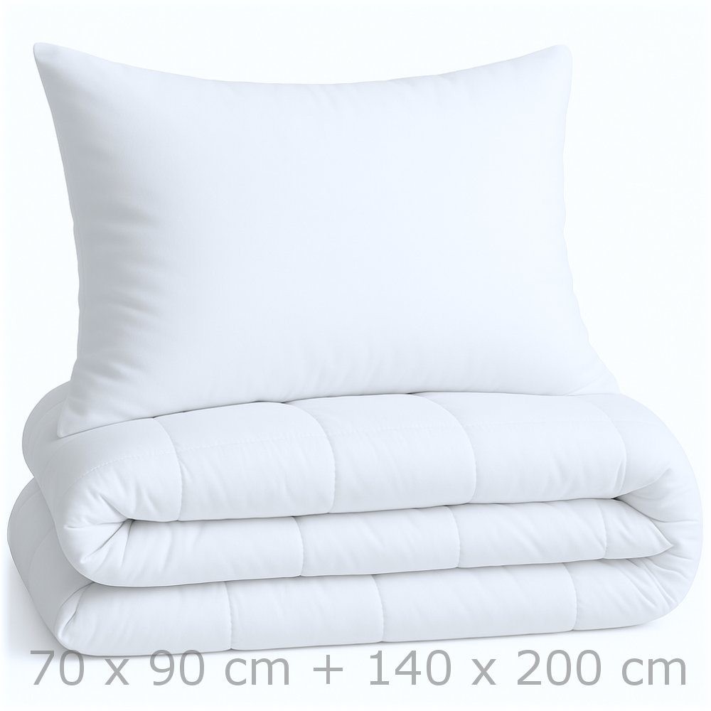Kvalitný set vankúša 70x90 cm a prešívaného paplóna 140x200 cm na každodenné použitie z jemného mikrovlákna s výplňou z dutého vlákna. Hebký, nadýchaný a prateľný na 60 °C. Vhodný do domácnosti aj do ubytovacích zariadení.
