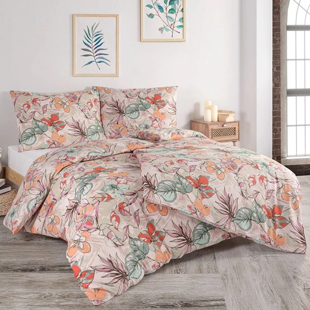 Viac o produkteObliečky Linden prinášajú do spálne svieži nádych prírody a pocit, ako by ste sa ocitli priamo uprostred rozkvitnutej záhrady. Ich povrch je doslova posiaty farebnými kvetmi a listami, ktoré spolu vytvárajú dokonalú harmóniu. Tento motív pripomína umelecké dielo, na ktorom maliar zachytil jedinečné spojenie moderného designu a krásy prírody. Súprava obsahuje obliečku na prikrývku s rozmermi 140 x 200 cm a obliečku na vankúš 70 x 90 cm, obe s praktickým zipsovým zapínaním pre ľahké prezliekanie. Vyrobená z kvalitnej bavlny Renforcé, ktorá je mäkká, pevná a príjemná na dotyk.