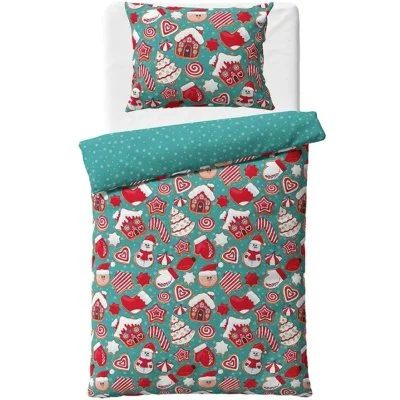 Vianočné obliečky s motívom perníčkov na tyrkysovom podklade prinesú do vašej spálne kúzlo ...