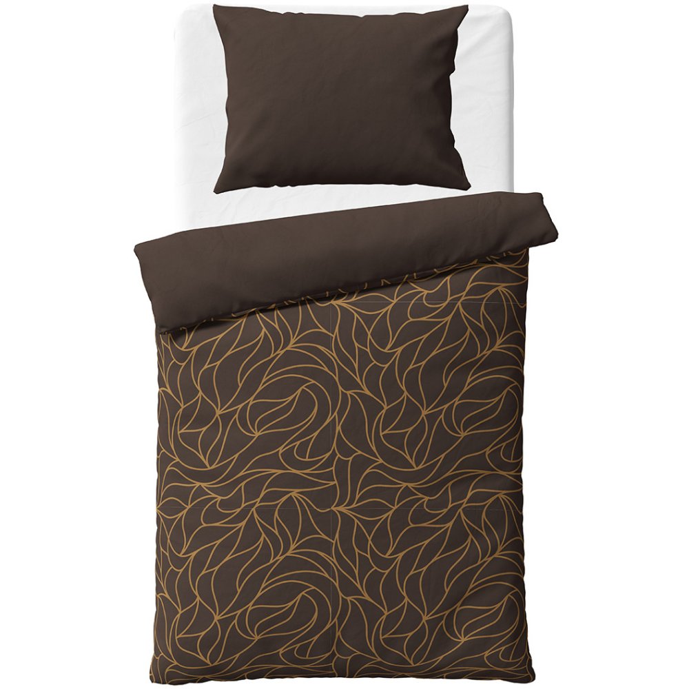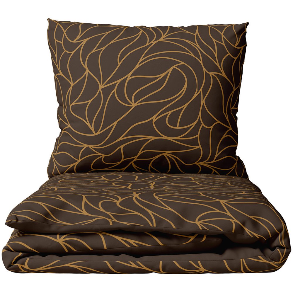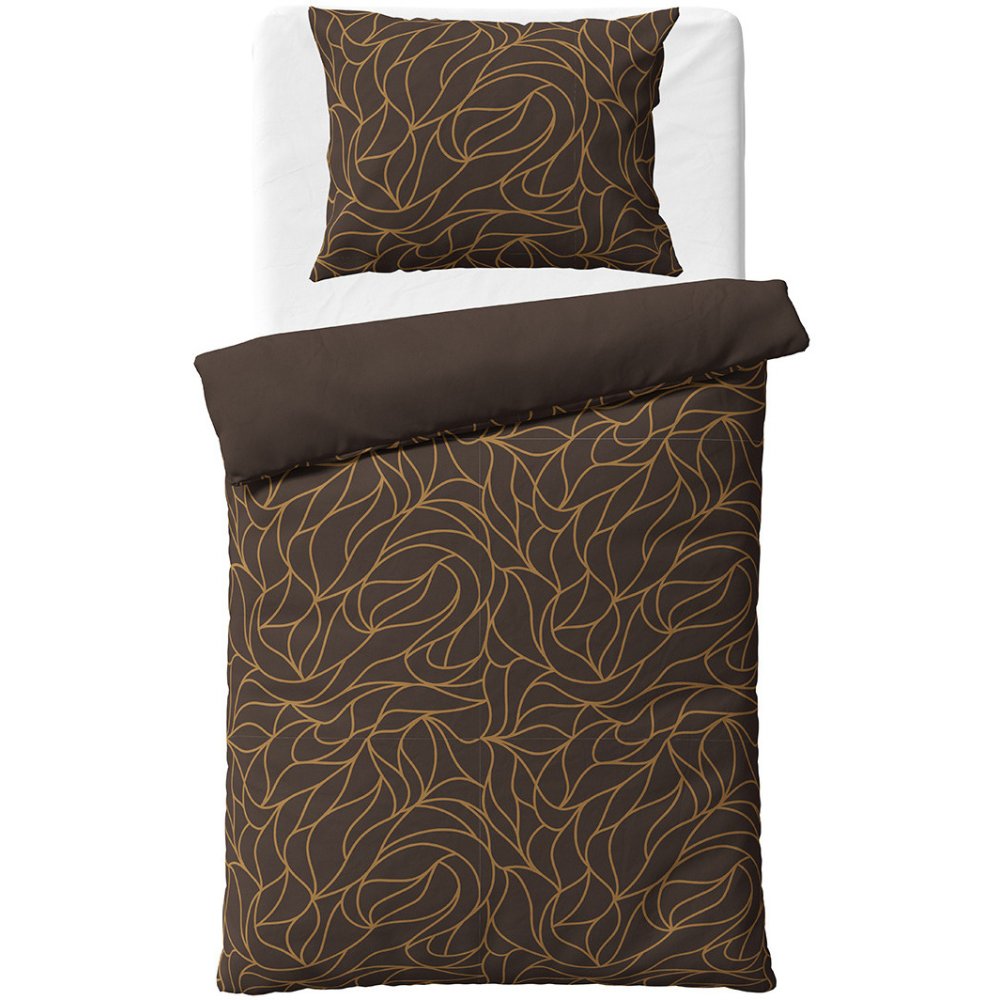 Súprava bavlnených posteľných obliečok Dark Dream zo série BedTex Home Line s elegantným abstraktným vzorom v hnedom a karamelovom odtieni na tmavohnedom podklade. Vyrobená zo 100 % bavlny Renforcé. Rozmery 140 × 200 cm a 70 × 90 cm, zapínanie na zips.