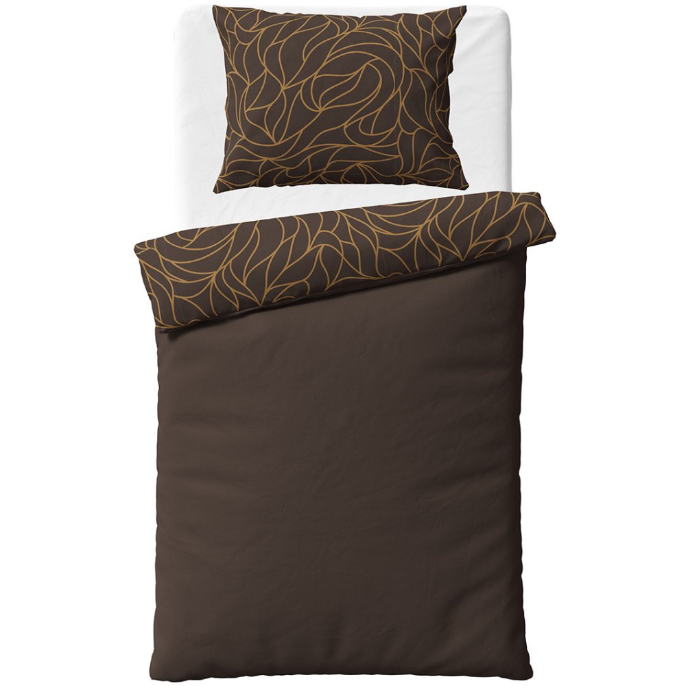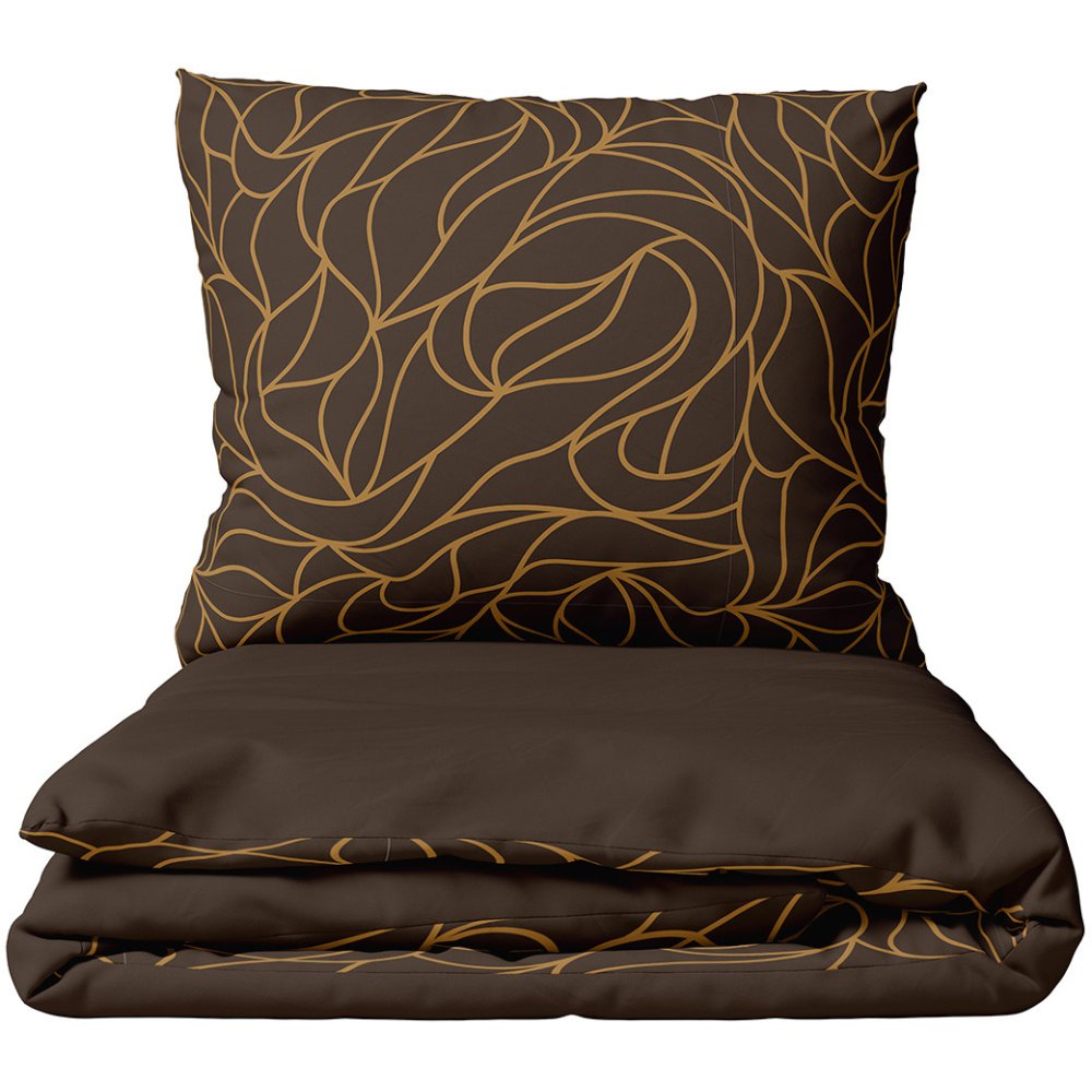 Viac o produkteObliečky Dark Dream dodajú spálni elegantný vzhľad. Na lícnej strane je jemný abstraktný motív v kombinácii hnedých a karamelových tónov, ktorý na tmavom podklade pôsobí harmonicky, nadčasovo a dobre ladí s modernými aj prírodne ladenými interiérmi. Rubová strana je jednofarebná v tmavohnedom odtieni, ktorý dodáva obliečkam pokojný a vyvážený charakter.