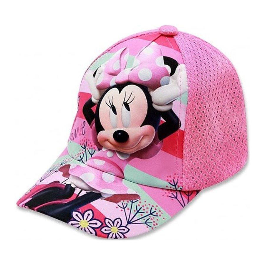 Detská baseballová čiapka / šiltovka pre dievčatá Minnie Mouse - Disney. Prednú stranu čiapky a vystužený šilt zdobí obrázok myšky Minnie s jej charakteristickou veľkou mašľou. Zadná strana šiltovky a spodná časť šiltu je svetlo, alebo tmavo ružová (pozri výber farby a veľkosti nižšie), jemne perforovaná s tenkou a dokonale priedušnou podšívkou. Zo zadnej strany je nastavovací pásik so suchým zipsom.