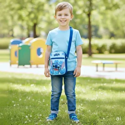 Crossbody taštička Stitch v modrom prevedení s veselým motívom obľúbeného mimozemšťana z ...