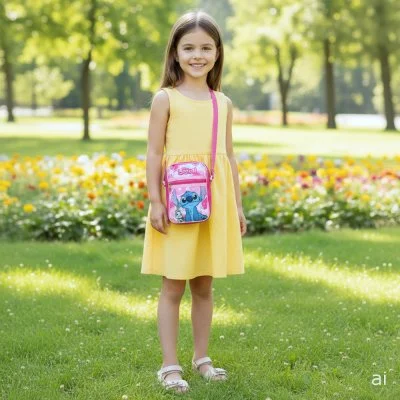 Štýlová dievčenská crossbody kabelka na telefón či drobnosti s motívom Stitch. Ružové prevedenie ...